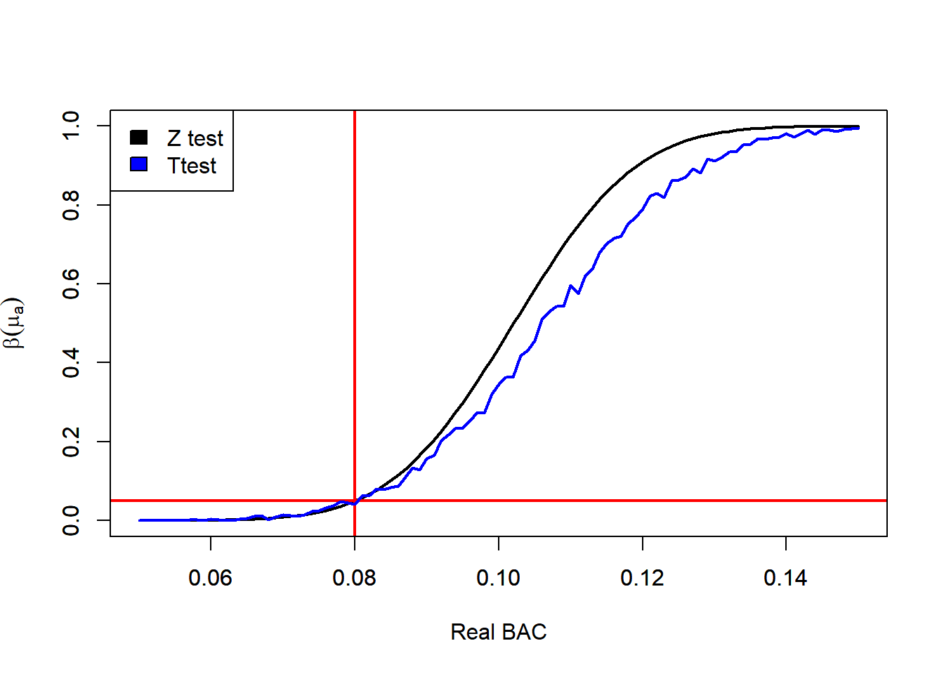 legend = c("Z test", "Ttest"),