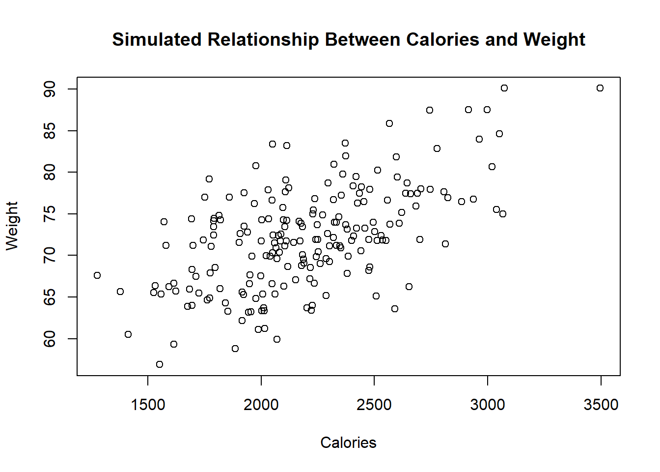 main="Simulated Relationship Between Calories and Weight")